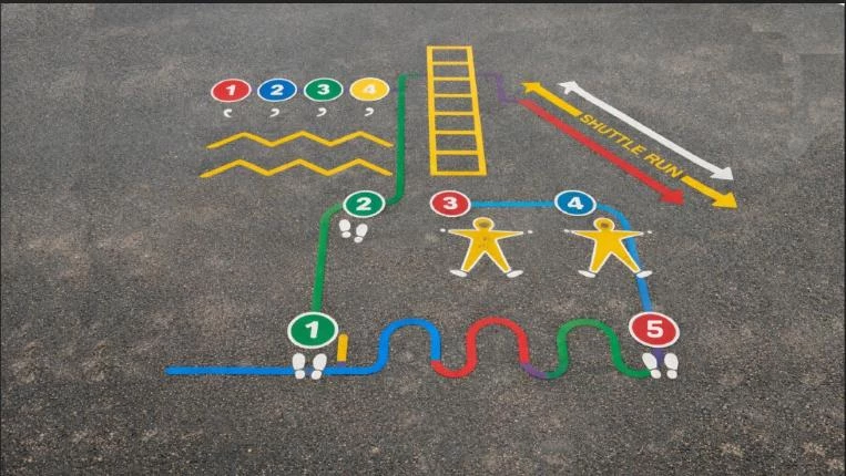 Outdoor fitness markings support PE lessons because they provide ready-made activity zones.